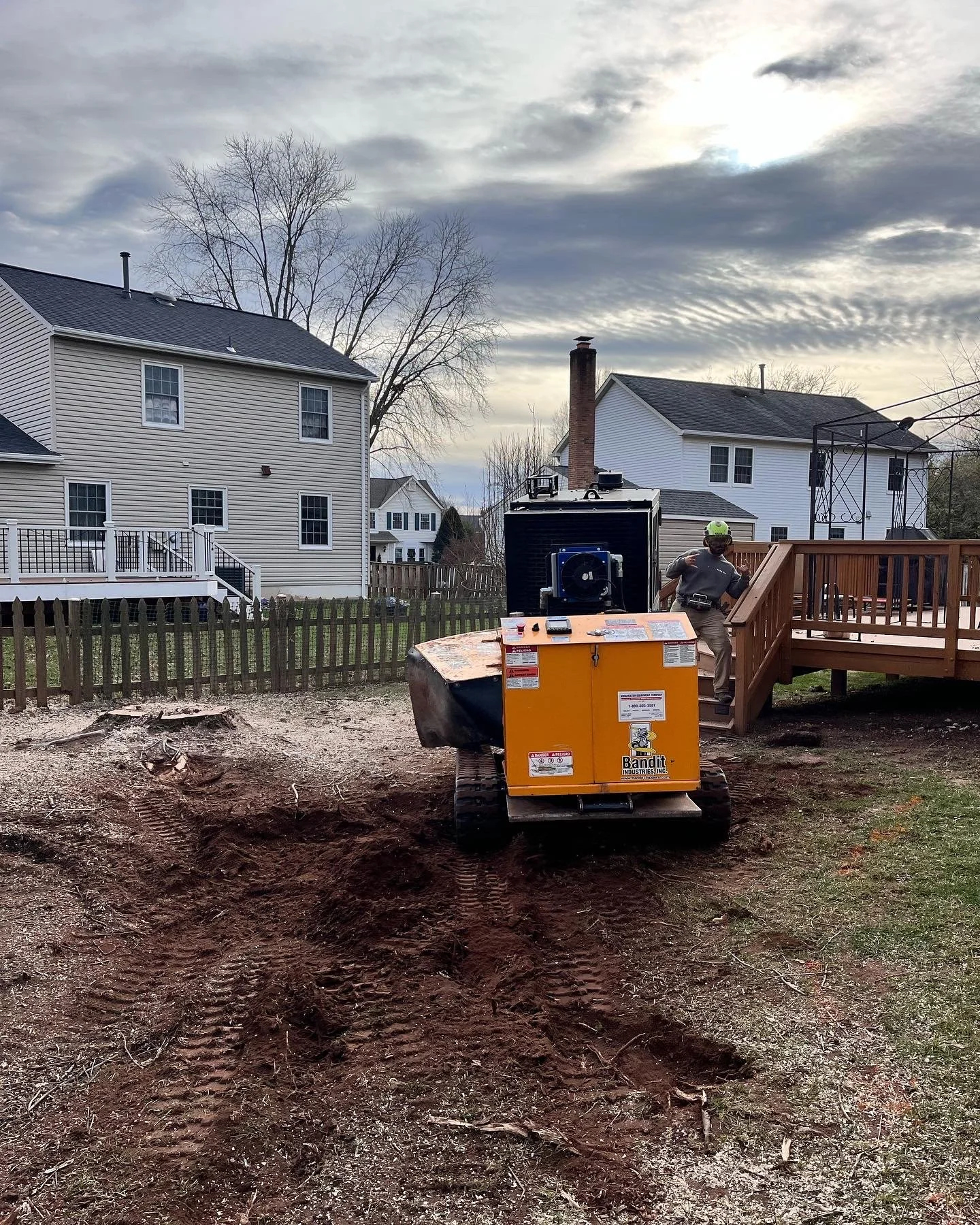 We removed a Red Maple with a large area of decay at the base. Tree was am enormous hazard to the house and deck. Red Maple was cut down, debris removed and the stump ground. The back yard is now ready for Spring time grass.