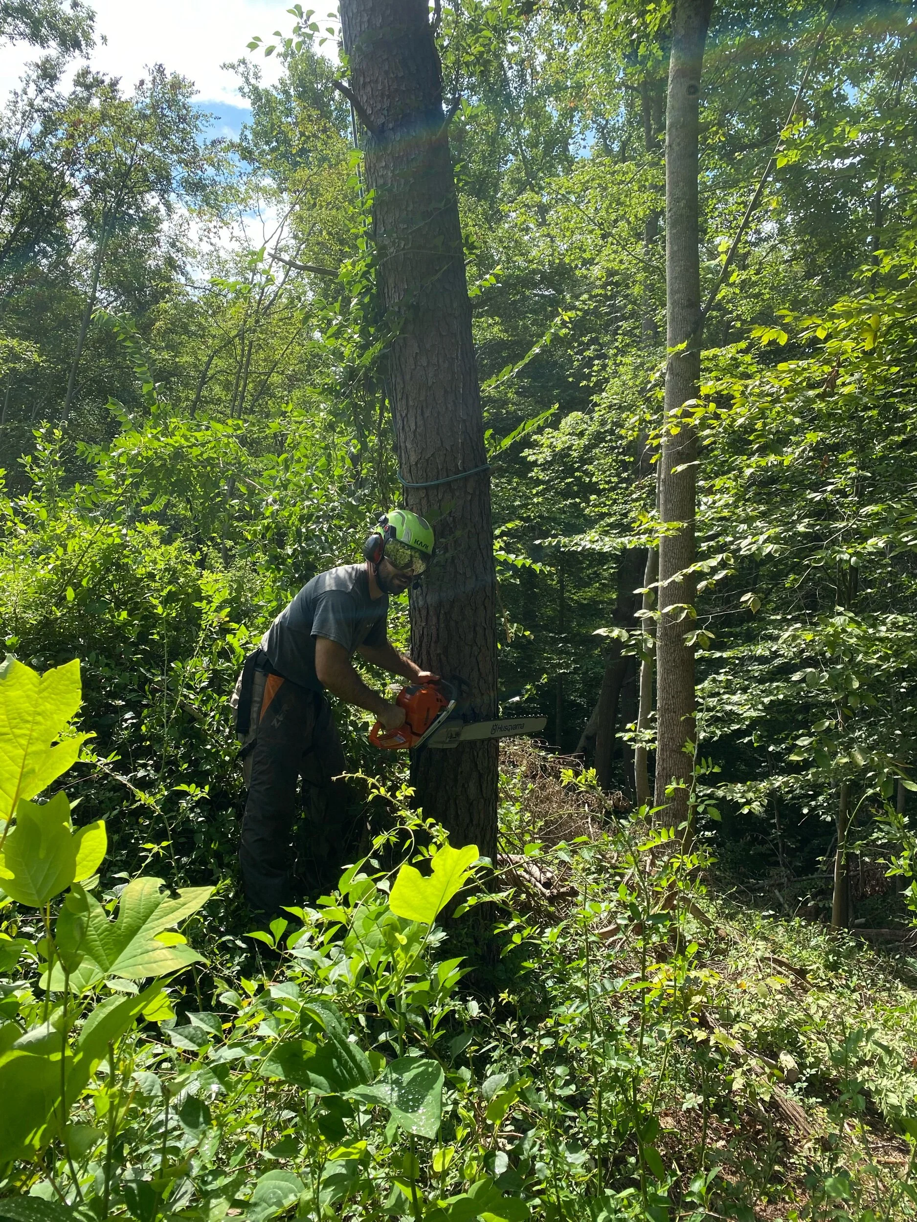 Some of our crew in different parts of our work. We try to have fun while being safe and efficient. We use all the best gear and follow all OSHA and ANSI standards for tree work.