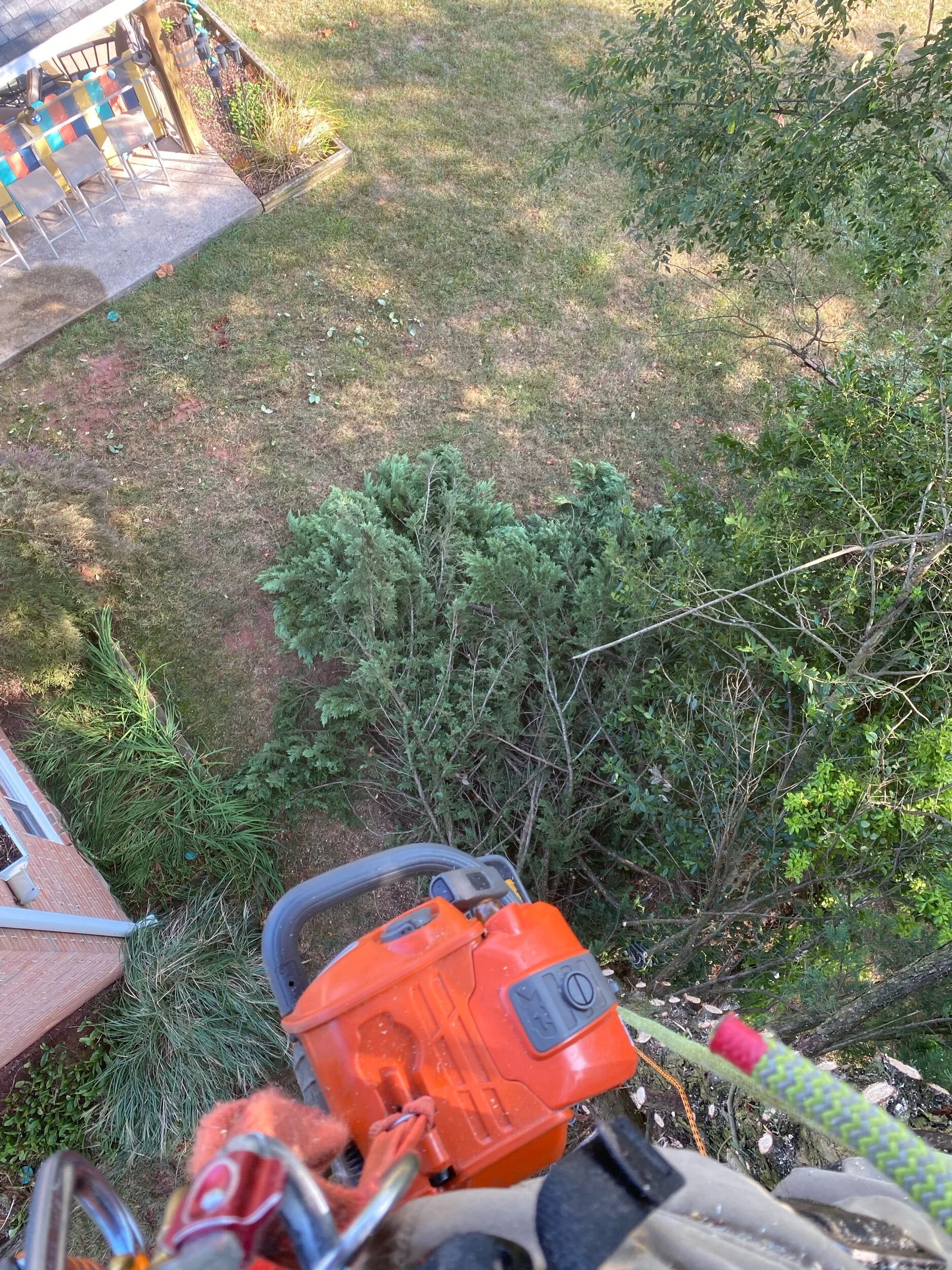 Remove a decent size Leyland Cypress today. It was no longer providing screening from the neighbors and so the homeowner was ready for a blank space to plant something new.